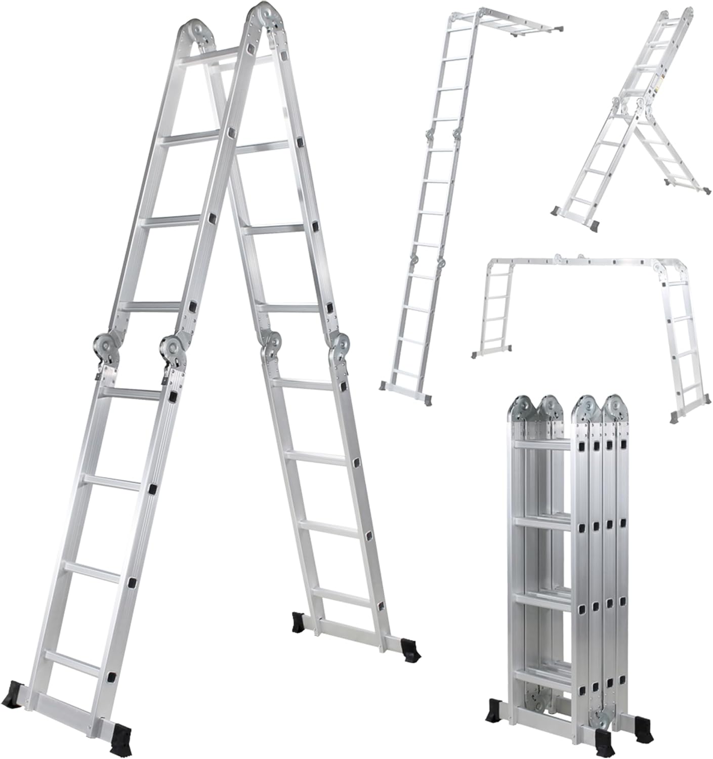 - Platzsparendes Design: Dank der Gelenkbauweise lässt sich die 450 cm lange Leiter nach dem Arbeitseinsatz kompakt zusammenklappen und platzsparend im Auto oder Regal verstauen.