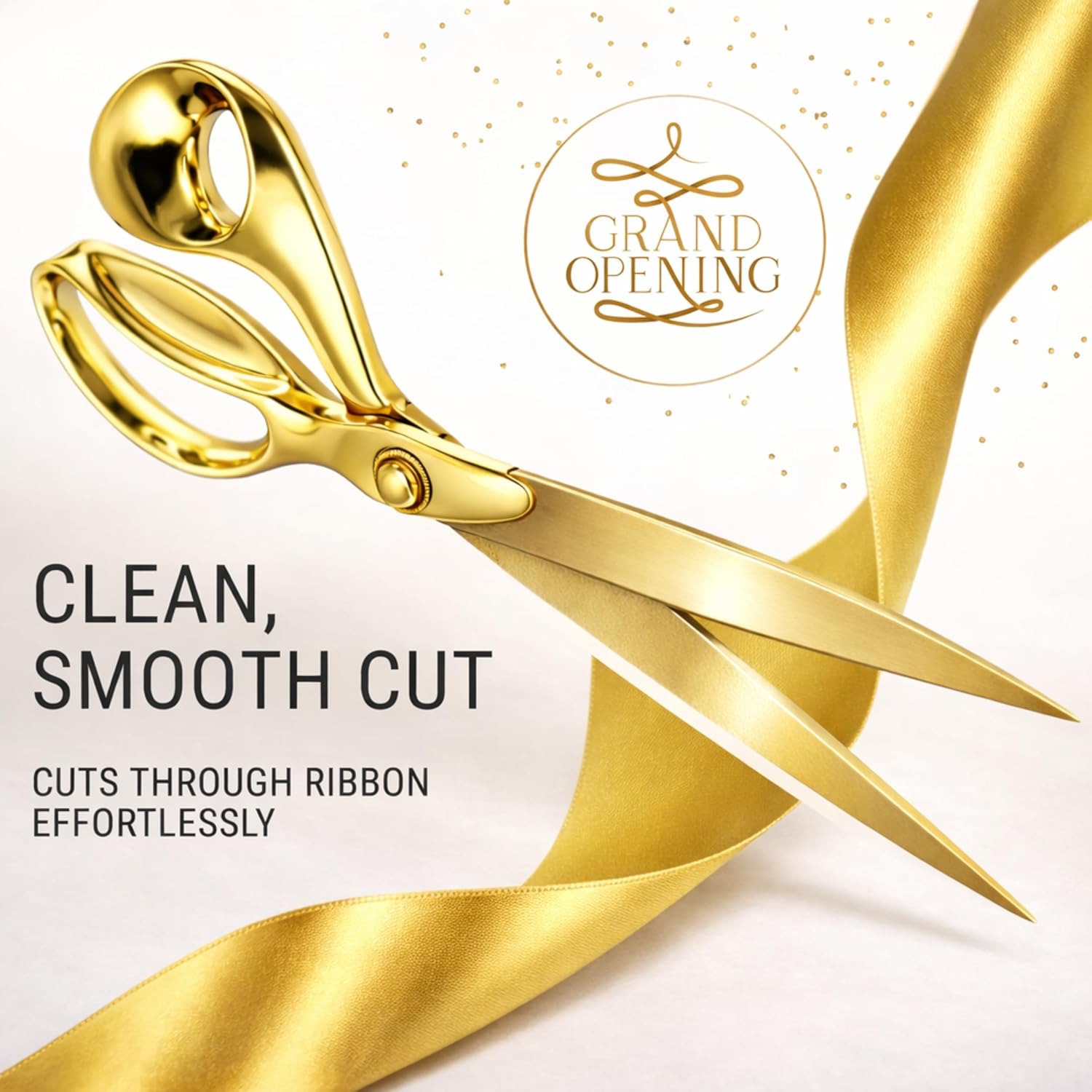 Die Klingen bestehen aus gehärtetem Edelstahl mit einem speziellen Gold-Finish. Dieses Finish unterstreicht nicht nur den feierlichen Charakter, sondern bietet auch einen gewissen Schutz gegen oberflächliche Korrosion. Aus unserer Erfahrung bei der Begleitung von Event-Setups wissen wir, dass nichts unangenehmer ist als eine stumpfe Schere vor Publikum. Deshalb ist bei diesem Modell die Schärfe ab Werk so eingestellt, dass sie auch weiche, instabile Textilien ohne Widerstand durchtrennt.