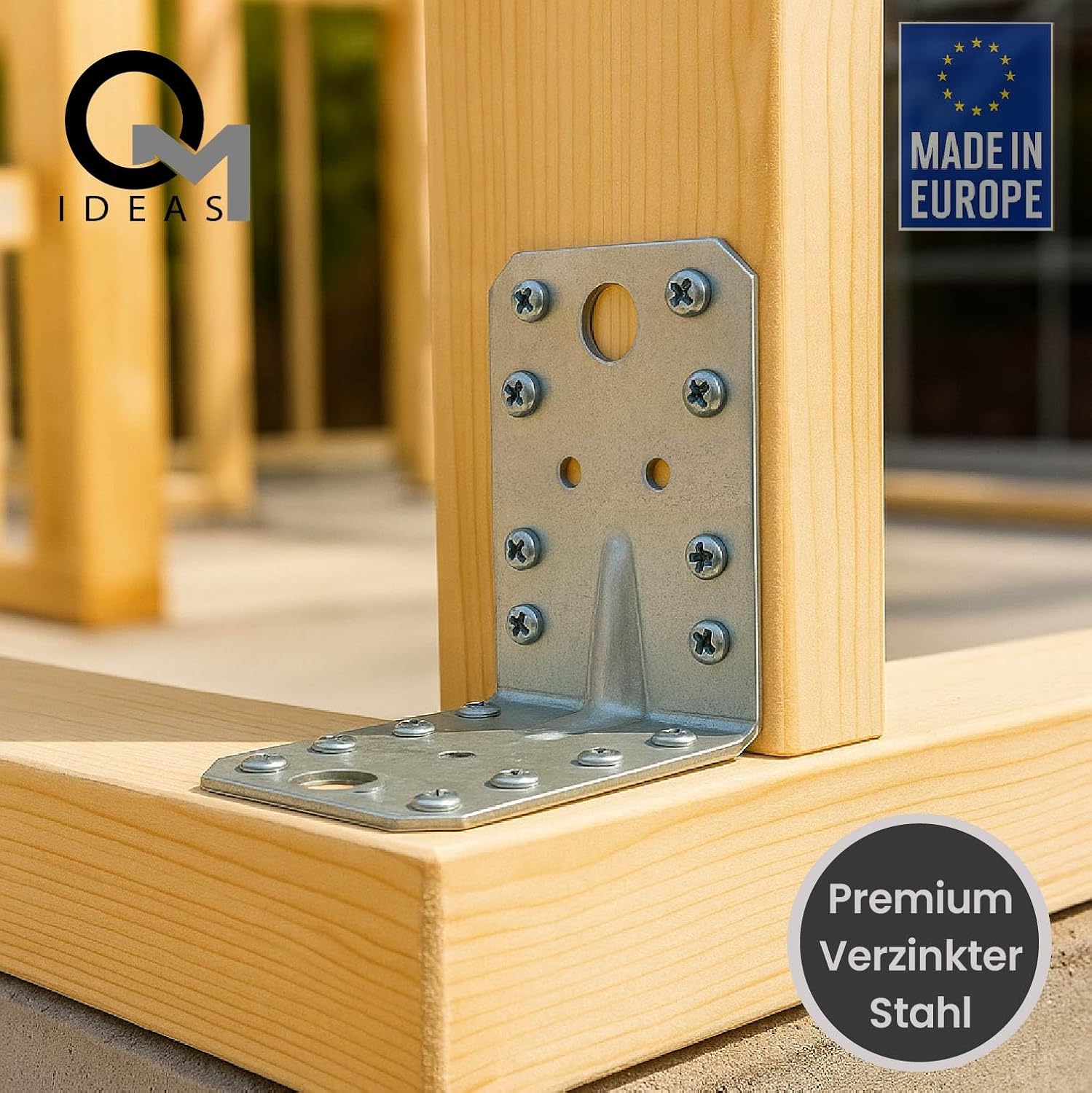 - Langlebiger Korrosionsschutz: Die hochwertige Verzinkung schützt das Stahlblech vor Rost, wodurch die Winkel bedenkenlos im geschützten Außenbereich verbaut werden können.