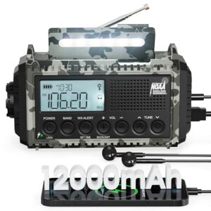 12000 mAh Kurbelradio | Notfallradio mit Kurbel & Solar | AM/FM Radio mit Weltempfanger | Tragbare Dynamo Radio | Als Ladegerät & Taschenlampe & Leseleuchte, Fur Camping, Notfall, Stromausfall