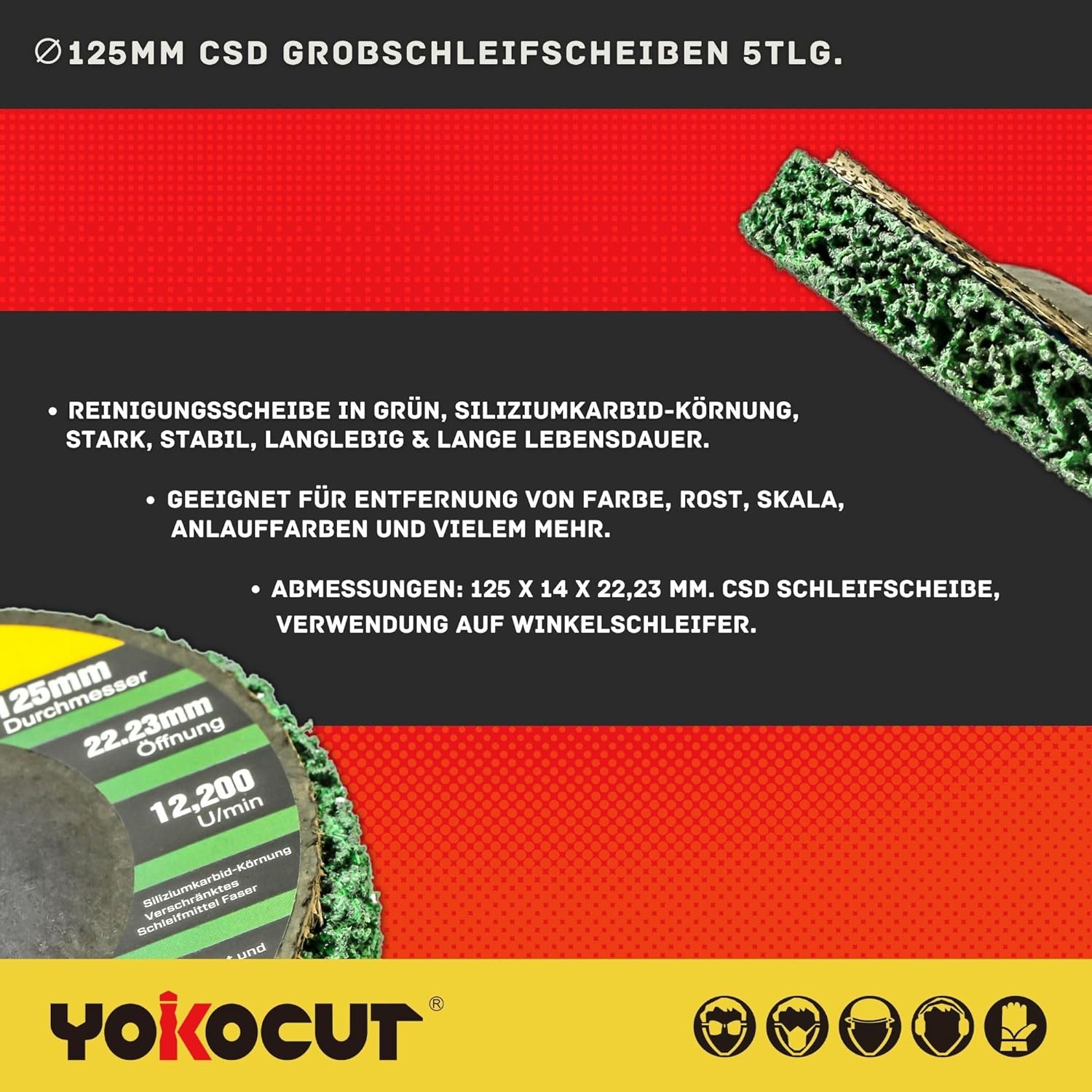 Die 125mm CSD Scheibe Schleif Sche ist die ideale Lösung für Profis und ambitionierte Heimwerker, die hartnäckige Rückstände effizient entfernen müssen. Dieses 5-teilige Set ermöglicht eine schnelle und materialgerechte Oberflächenreinigung bei der Metallbearbeitung und Restaurierung. Die Scheiben sind speziell dafür konzipiert, Korrosion und Lackschichten ohne hohen Abtrag am Grundmaterial zu lösen.