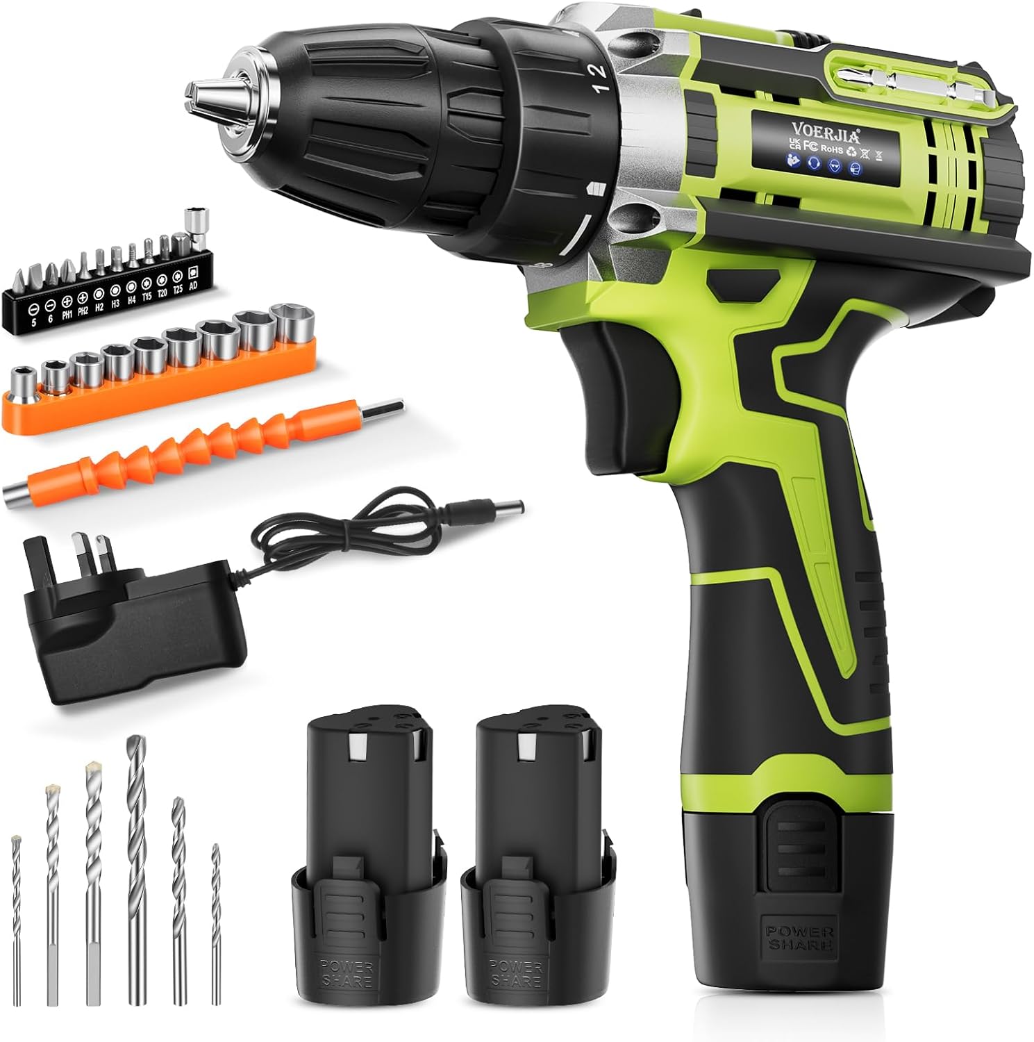 Der 12V klein Akkuschrauber Set von VOERJIA richtet sich an Heimwerker, Hobbyhandwerker und alle, die ein kompaktes Werkzeug für Arbeiten in Haus und Garten suchen. Mit 35 Nm Drehmoment, zwei 2000 mAh Akkus und einem umfangreichen 32-teiligen Zubehör-Set bietet dieser Akkubohrschrauber alles, was du für Montagearbeiten, Möbelaufbau und kleinere Reparaturen benötigst. Dank seines geringen Gewichts von nur 900 Gramm und der kompakten Bauweise eignet er sich besonders für Arbeiten über Kopf und in engen Bereichen.
