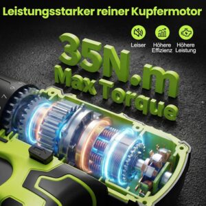 - Präzise Schraubkontrolle: 18+1 Drehmomentstufen bis 35 Nm verhindern Überdrehen und Materialbeschädigungen – ideal für empfindliche Oberflächen und Möbelbau