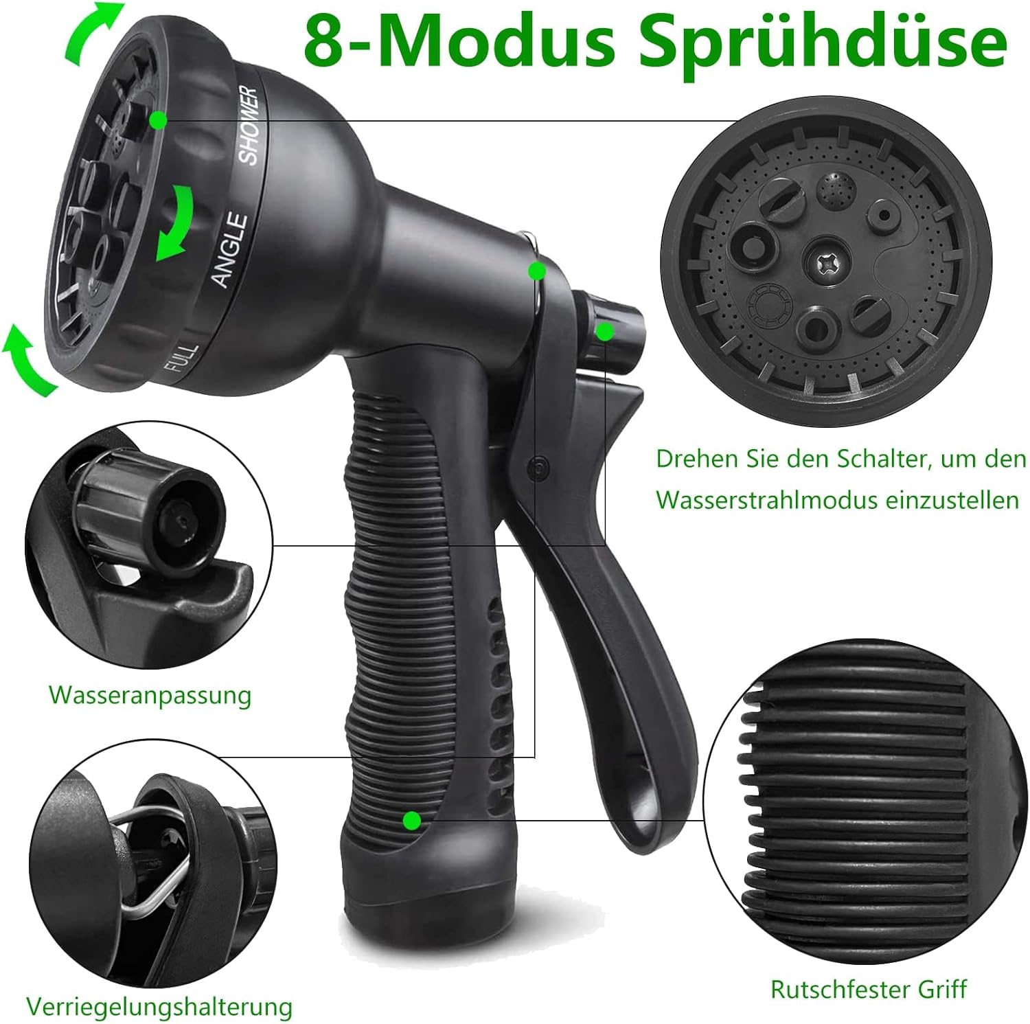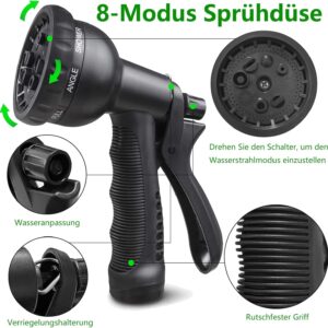 - Vielseitige Anwendung: Die integrierte 8-Modi Sprühpistole deckt alle Anforderungen ab, von sanftem Nebel für Pflanzen bis zum punktgenauen Hochdruckstrahl für hartnäckige Verschmutzungen.