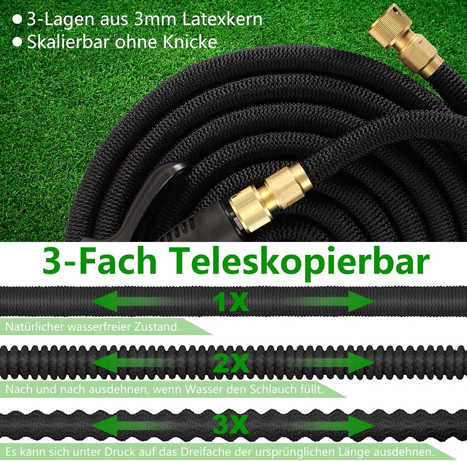 Wer mit Schlauchsystemen arbeitet, kennt die Problematik: Zu schwer, knicken schnell ab und nehmen im Lagerraum zu viel Platz ein. Dieser 15M/50FT flexible Gartenschlauch setzt genau hier an. Mit seinem 3-fach Expansions-Mechanismus bietet er bei vollem Wasserdruck eine Reichweite von 15 Metern, reduziert sich jedoch im entleerten Zustand auf ein extrem handliches Packmaß. Dies macht ihn zur idealen Wahl für mobile Einsätze.