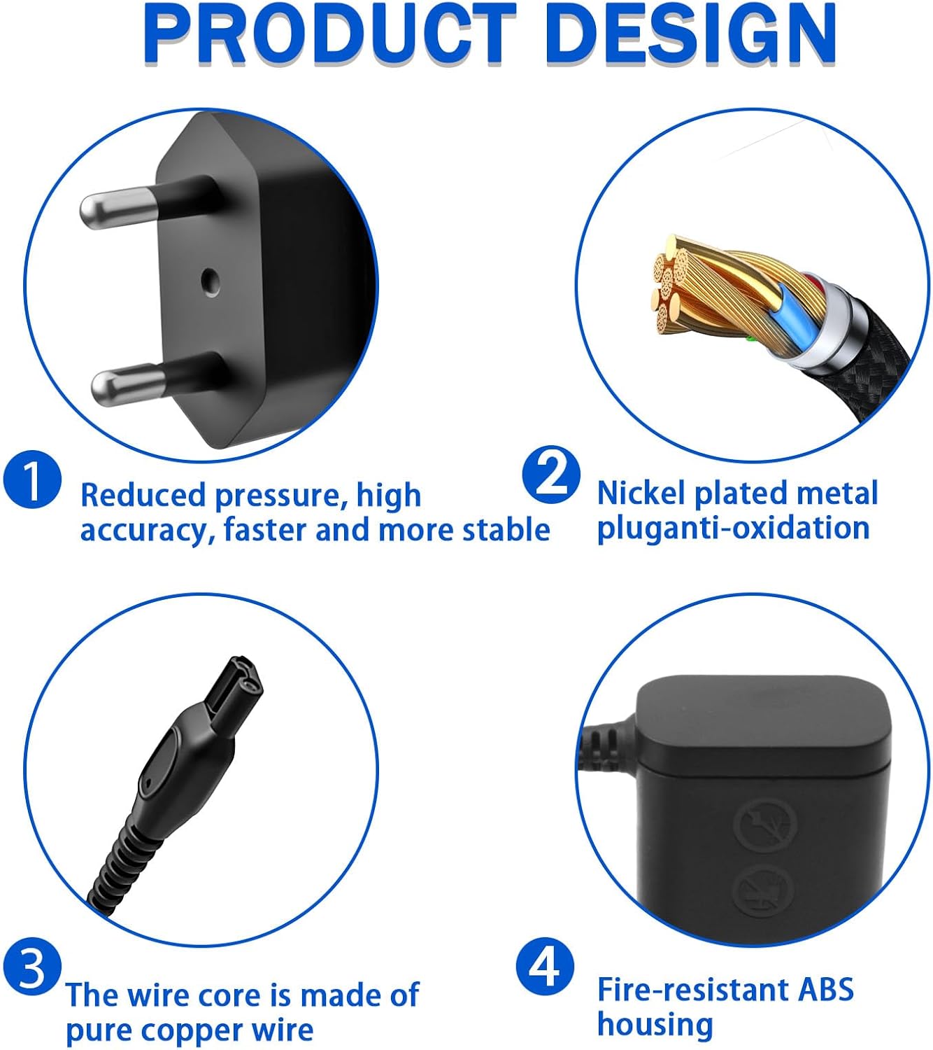15V HQ8505 Rasierer Ladegerät Kompatibel mit Philips Norelco 3000 5000 7000 9000 Series MG7745 MG7730 MG7720 MG7710 QP6510 QP6520 QP6530 BG5020 S5050 S9000 AT750 Ladekabel Adapter Netzteil Ladegerät