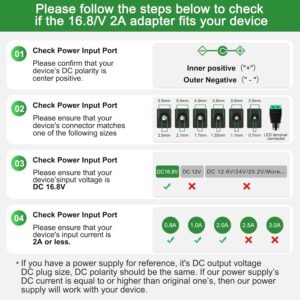 - Sicherheit bei der Ladung: Der Ausgang von 16.8V 2A ist präzise auf 14.4V Li-Ion Akkus abgestimmt, was den Verschleiß am Zellpaket gegenüber billigen Netzteilen minimiert.