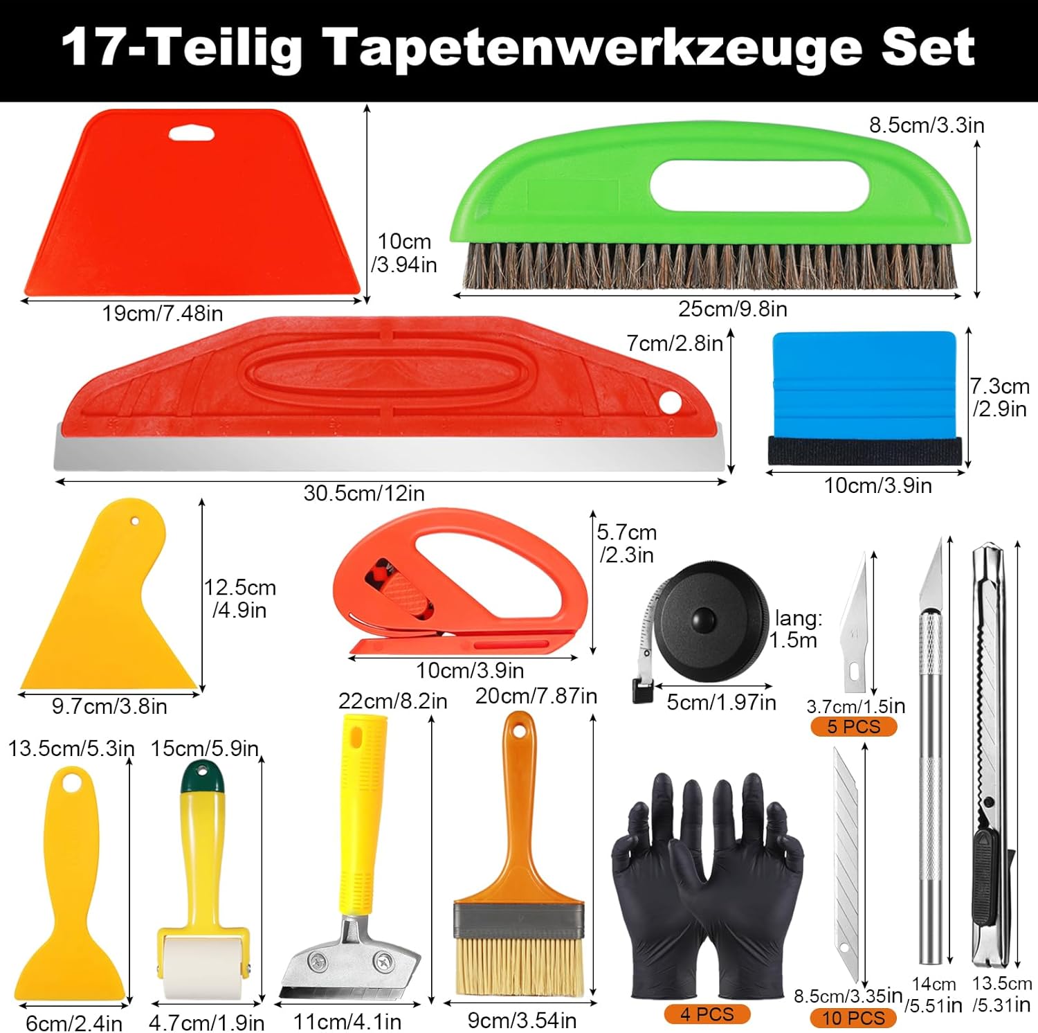 5. Technische Eigenschaften für das Produkt 17 Stück Tapetenwerkzeuge Set,