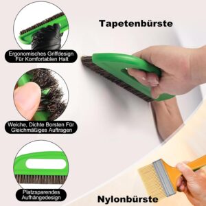 - Ergonomisches Arbeiten: Die Tapetenbürste mit rutschfestem Griff und dreireihiger Borstenanordnung schont die Handgelenke und verhindert Haarausfall auf der frischen Tapete.