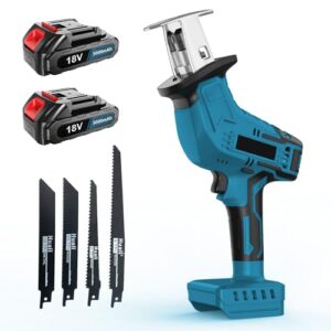 18-V-Akku-Säbelsäge mit zwei Akkus (2 × 3000 mAh), tragbare Elektrosäge mit 4 Multimaterial-Sägeblättern, ideal zum Schneiden von Holz, Metall und Kunststoff sowie für Heimwerkerprojekte