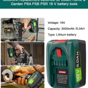 18V 5.0Ah Ersatzakku Kompatibel mit Bosch PBA PSB PSR Home & Garden, 5000mAh Lithium Akku für Gloria Akku Werkzeuge, Hochkapazität Ersatzbatterie für Bosch 18V Elektrowerkzeuge(2er Pack)18V 5.0Ah Ersatzakku Kompatibel mit Bosch PBA PSB PSR Home & Garden, 5000mAh Lithium Akku für Gloria Akku Werkzeuge, Hochkapazität Ersatzbatterie für Bosch 18V Elektrowerkzeuge(2er Pack)