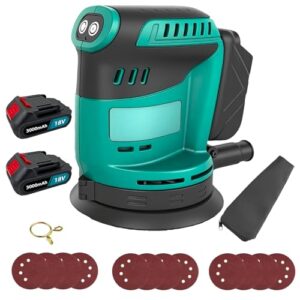 18V Akku Exzenterschleifer mit 2x 3.0AH Akku, Ersatz für Makita 18V Akku,12 pcs Schleifpapier (Körnung 120/180/240,125mm), 3 Gänge 7500-15000RPM, für Schleifen und Polieren von Holz