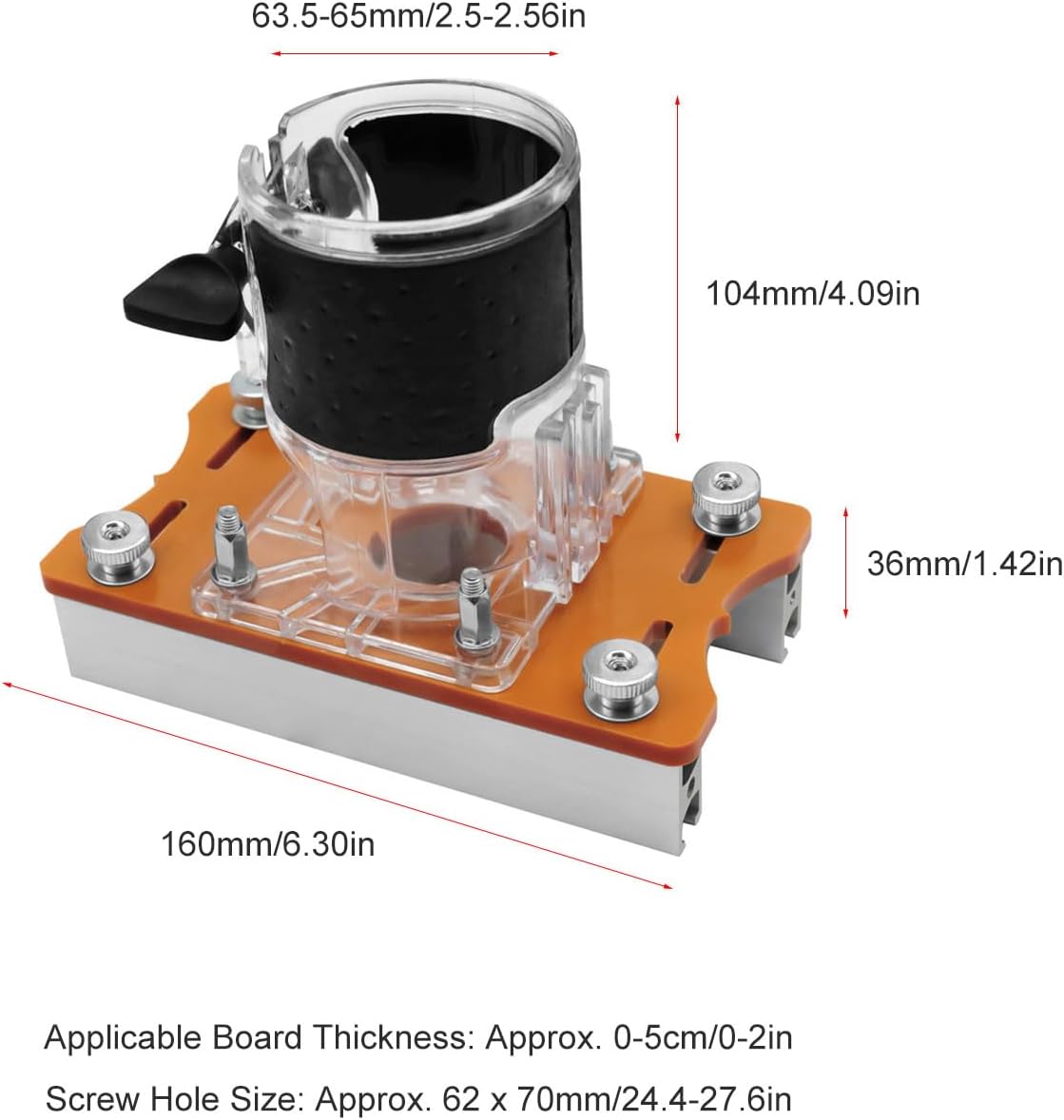 Der 2-in-1 Holzbearbeitungsfräser Basis-Lokator wurde konzipiert, um Fräsarbeiten spürbar zu vereinfachen und das Fehlerrisiko bei manuellen Führungen zu eliminieren. Durch die solide Konstruktion aus einer Aluminiumlegierung hast du eine stabile Basis, die auch bei längeren Einsätzen nicht nachgibt. Das kompakte Design sorgt dafür, dass dein Arbeitsradius nicht unnötig eingeschränkt wird, was besonders bei detaillierten Kurvenschnitten oder beim Anfasen von Kanten von Vorteil ist.