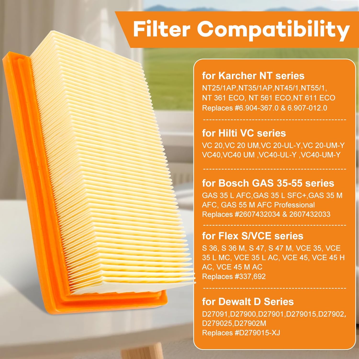 2 Stück Filter für Hilti VC 20 U VC 40 U UM (LF 4), für Kärcher NT25 NT35 NT45 Staubsauger Ersatzteile