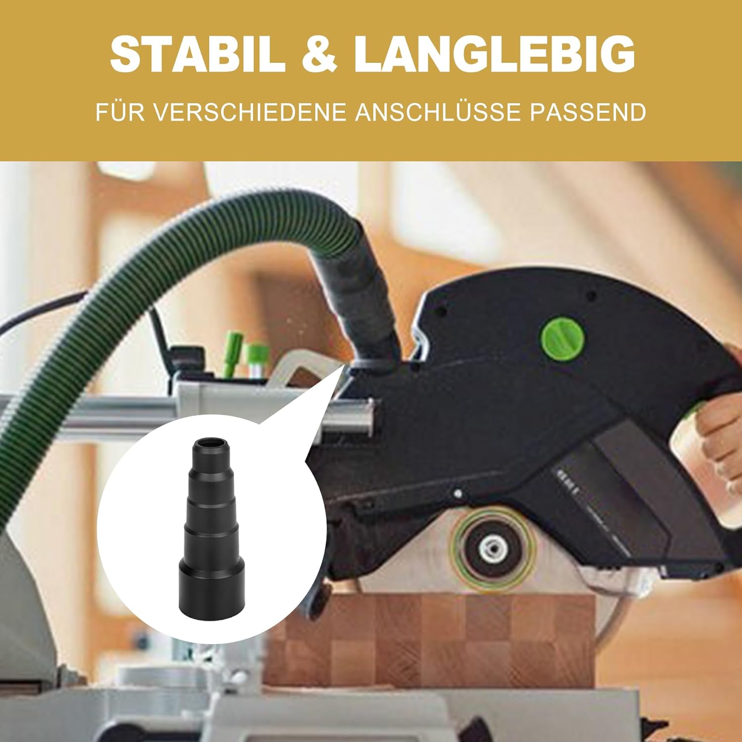 Im Grunde ist das dein wichtigster Helfer in der Werkstatt, um unterschiedliche Welten zu verbinden. Der Adapter sorgt dafür, dass dein Staubsauger oder die Absauganlage endlich fest an Elektrowerkzeugen wie Kreissägen oder Schleifern sitzt, ohne dass du mit Panzertape improvisieren musst. In der Praxis spart dir das massiv Zeit und sorgt dafür, dass die Bude sauber bleibt.