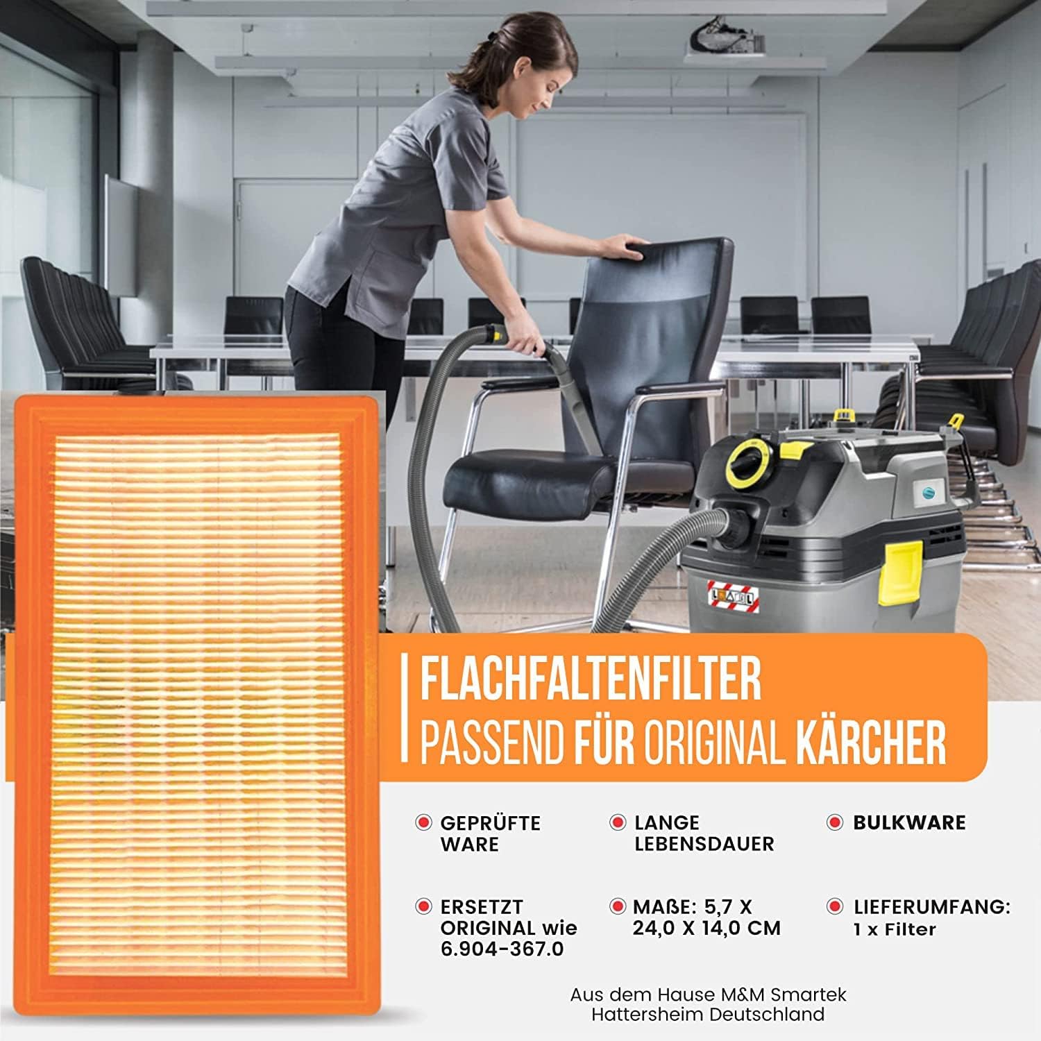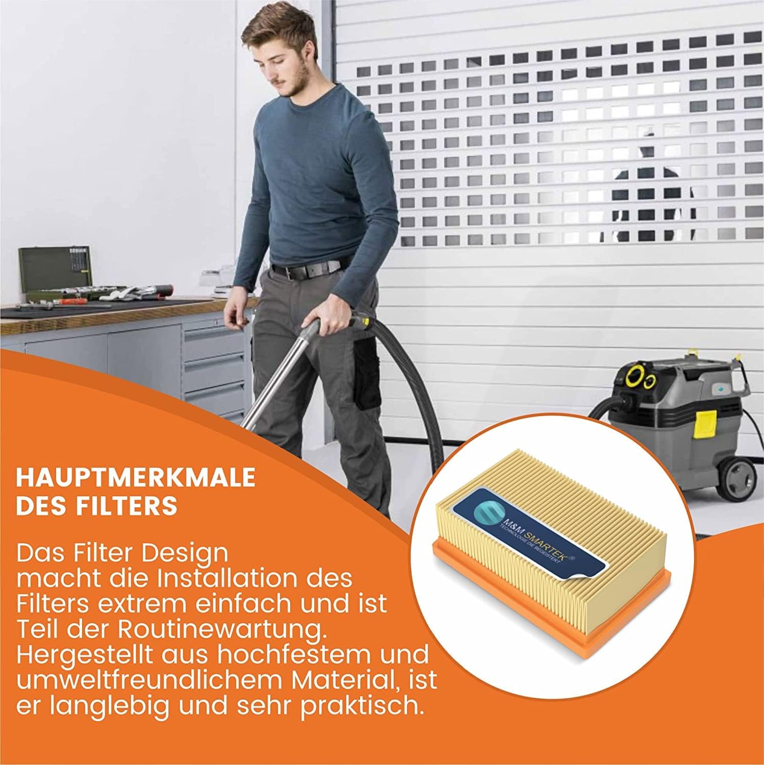 Für Schreiner reicht der Filter völlig aus, da er den Holzstaub zuverlässig zurückhält. Wenn du allerdings extrem feine Stäube wie Gips oder bei sehr langen Einsätzen schleifst, empfehle ich, den Filter zwischendurch kurz mit Druckluft auszublasen. Das verlängert die Standzeit spürbar. Der Einsatz ist ideal für die Kärcher NT 25/1 bis 611 Baureihen, insbesondere bei den Tact- oder Eco-Modellen.