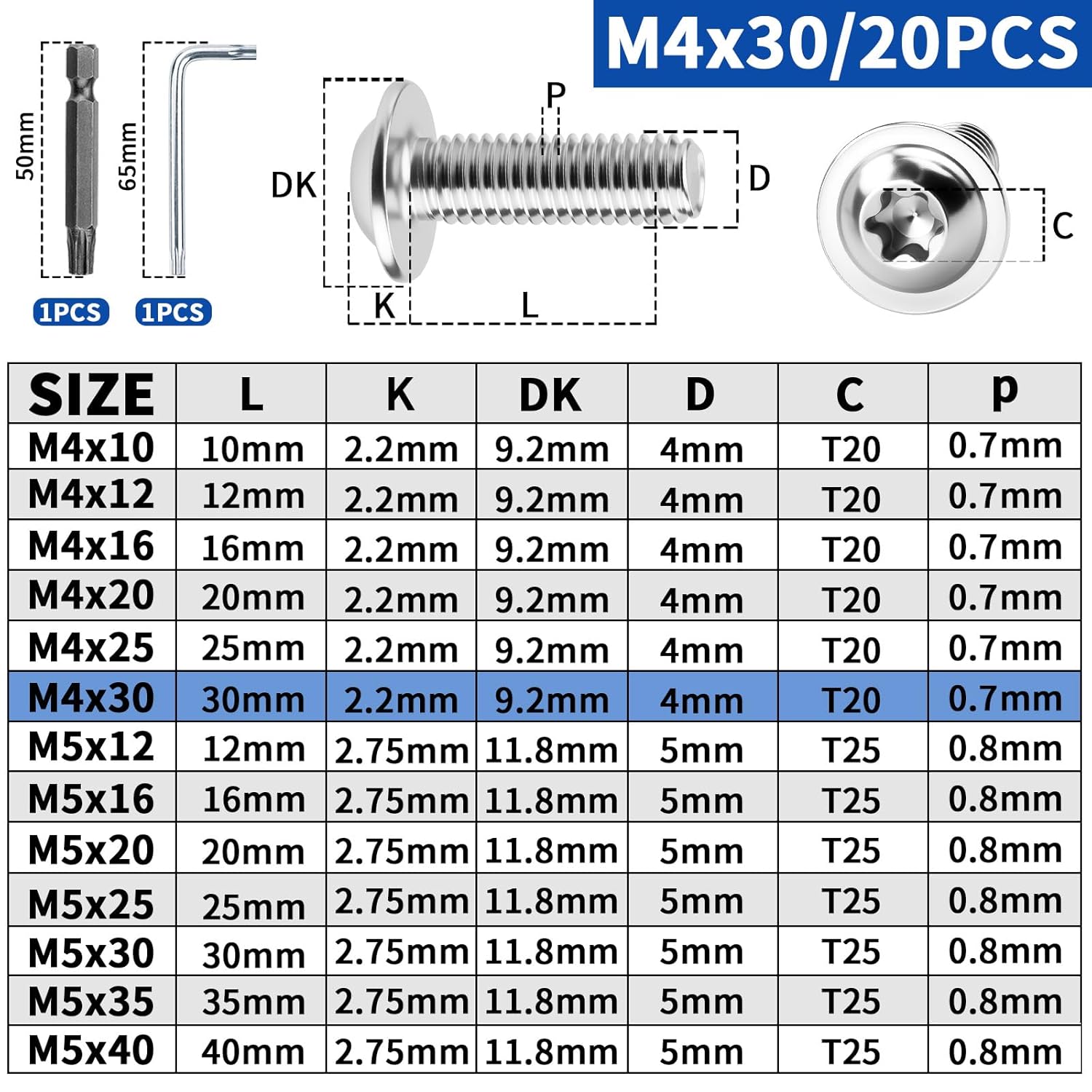 | Lieferumfang | 20 Stk Schrauben + T20 Bit + T20 L-Schlüssel |