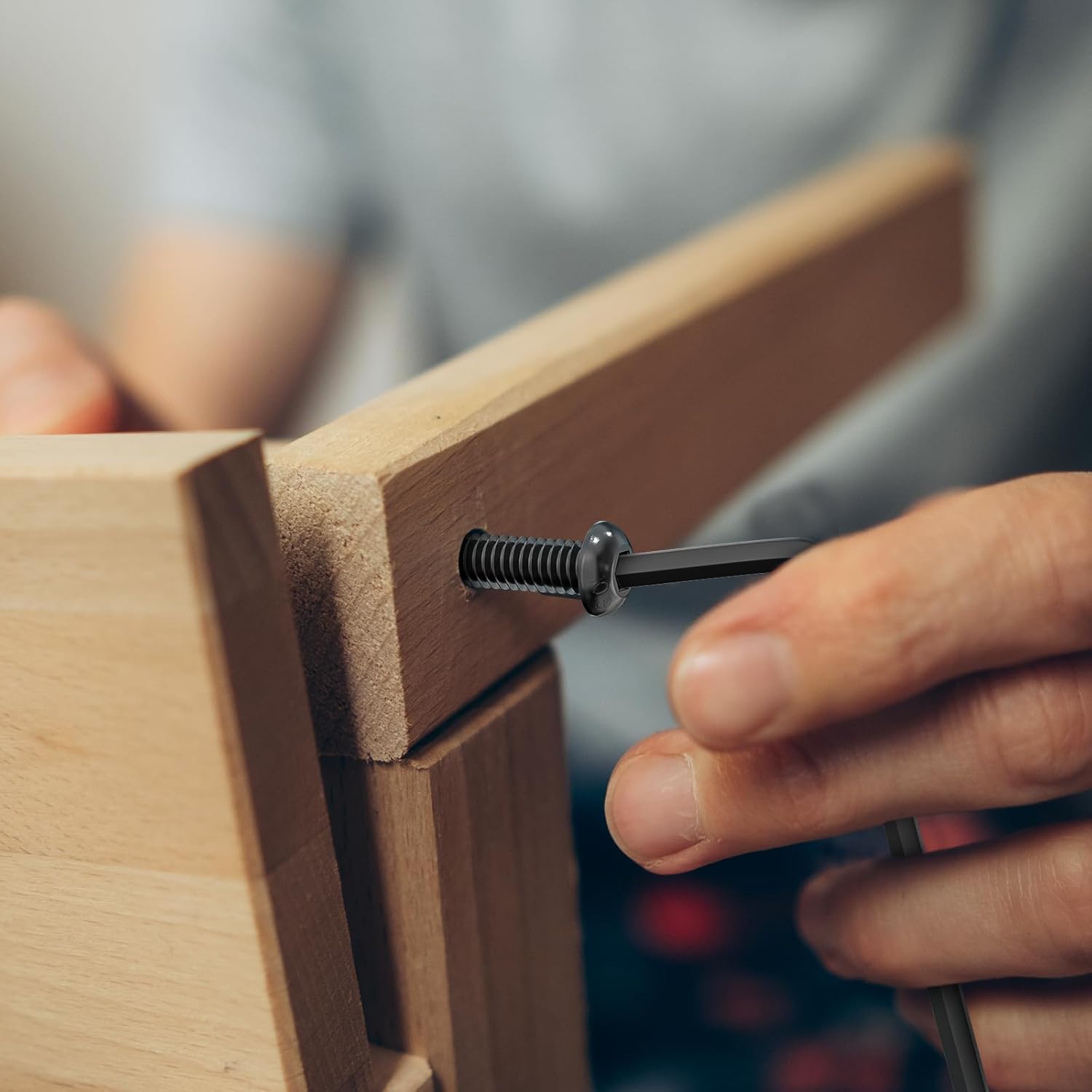 - Setze den mitgelieferten Schlüssel senkrecht und vollständig in den Innensechskant ein, um ein „Runddrehen“ des Kopfes zu vermeiden.