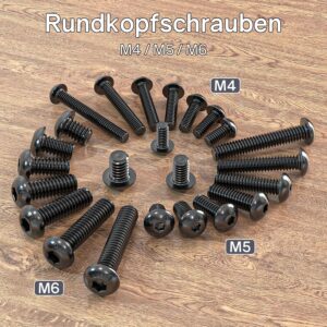 Diese Schrauben eignen sich hervorragend für den Einsatz in der Feinmechanik sowie im Modellbau. Sie finden Anwendung bei der Fixierung von Gehäuseabdeckungen in der Unterhaltungselektronik, beim Zusammenbau von 3D-Drucker-Komponenten, im Möbelbau zur Befestigung von Beschlägen oder in der Elektrotechnik. Die Schrauben greifen sicher in Metallgewinde oder können in entsprechend vorgebohrte Kunststoffteile eingedreht werden. Ob du als Modellbauer ein Fahrwerk fixierst oder als Hobby-Handwerker einen Schrankgriff montierst – diese M4-Linsenkopfschrauben sind das Standardmaß für filigrane Arbeiten.