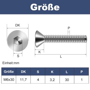Vorteile des Produkts 20 Stück M6 x 30 mm Senkkopfschrauben