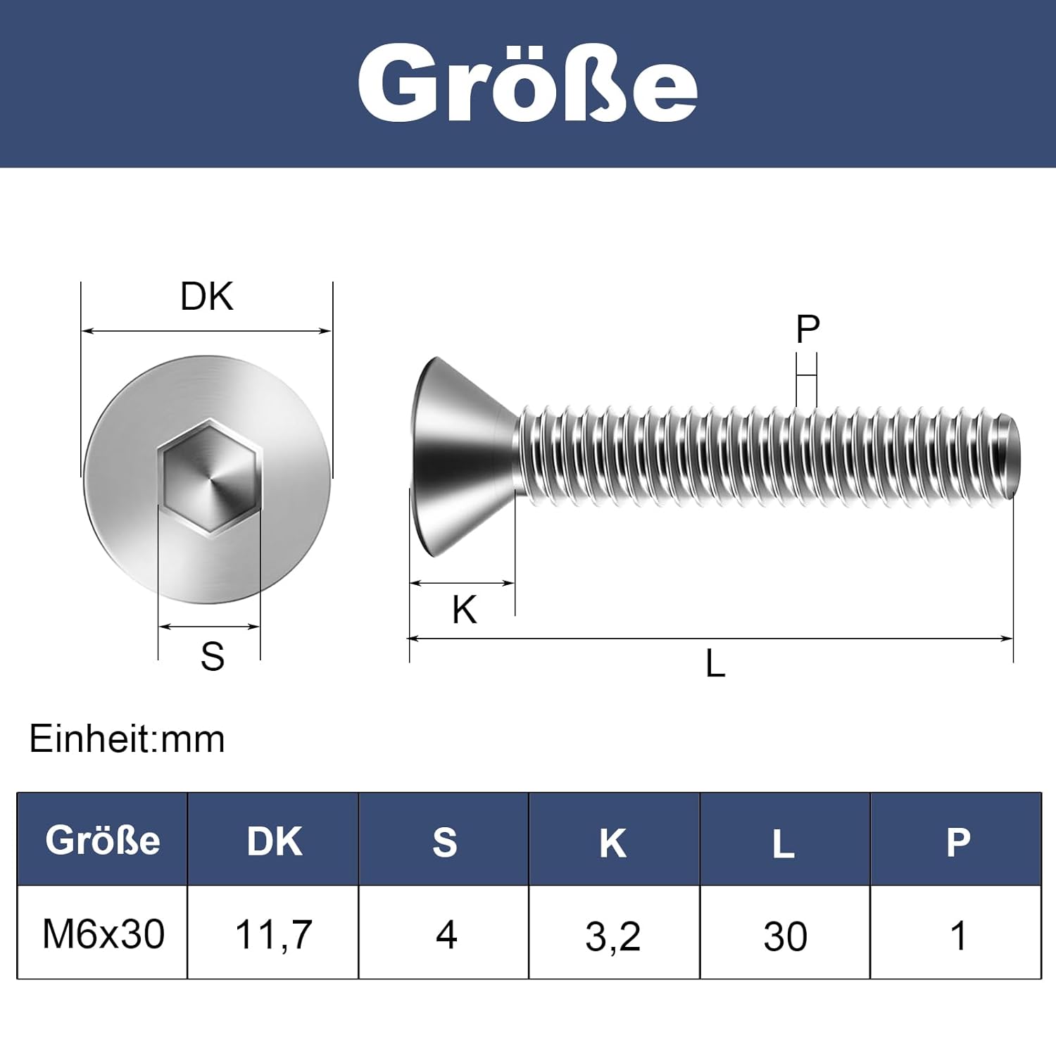 Produktbeschreibung für 20 Stück M6 x 30 mm Senkkopfschrauben