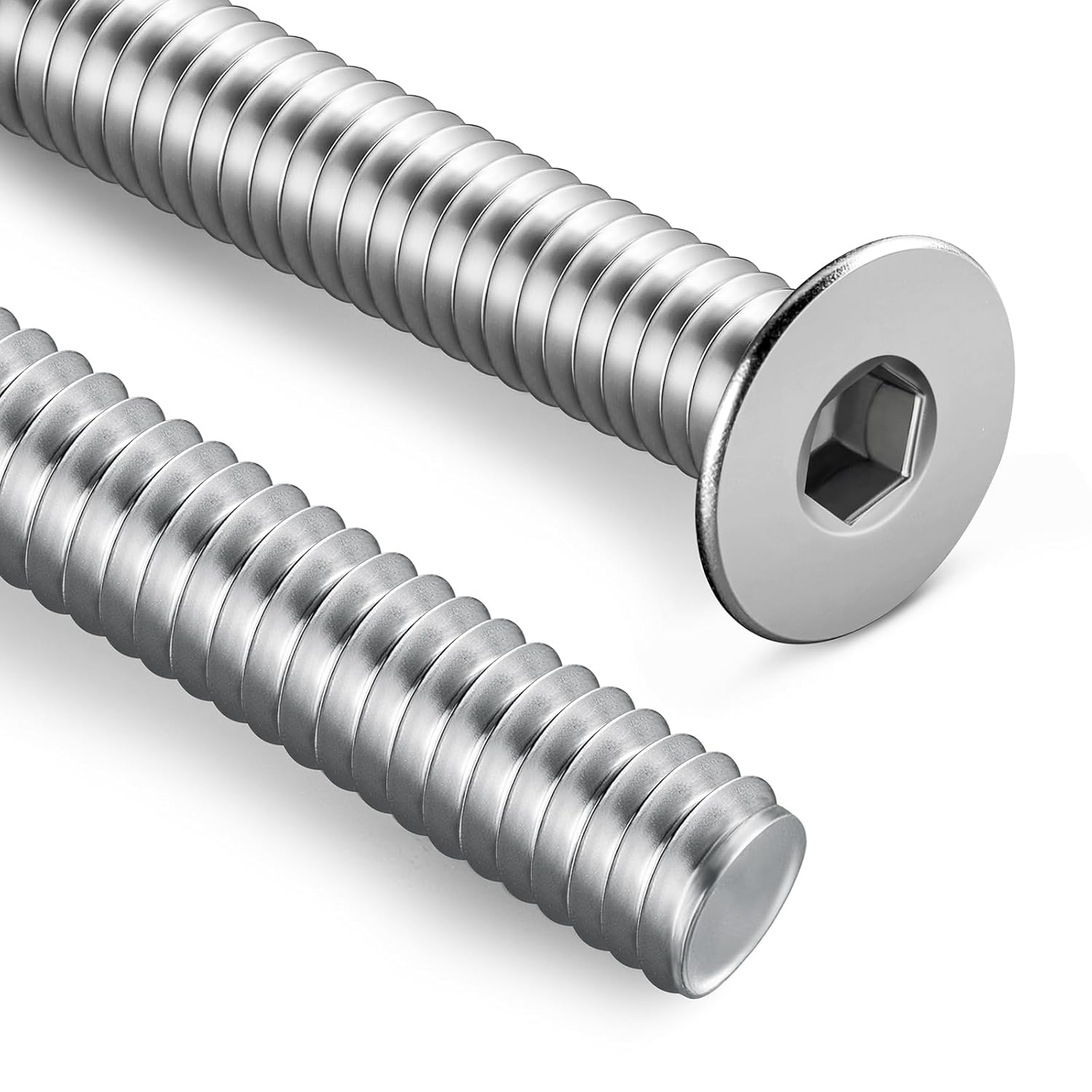 Senkkopfschrauben haben einen konisch geformten Kopf, der komplett in die Oberfläche versenkt werden kann, wodurch eine glatte, ebene Oberfläche entsteht. Im Gegensatz dazu steht bei Zylinderkopfschrauben der Kopf über die Oberfläche hinaus. Senkkopfschrauben eignen sich daher ideal, wenn eine bündige Montage erforderlich ist und der Schraubenkopf nicht hervorstehen soll.