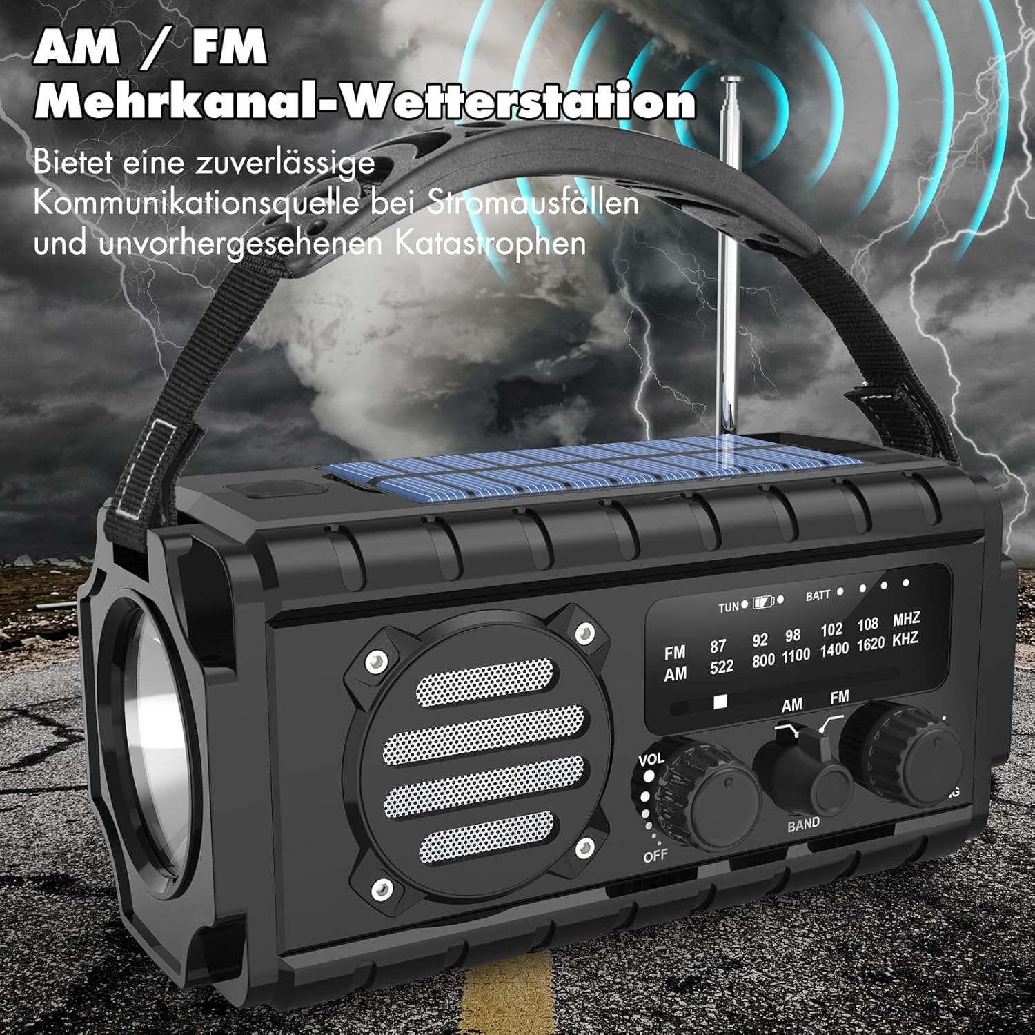 - Präziser Empfang: Die ausziehbare 360°-Antenne garantiert sauberen AM/FM-Empfang, um Wetterwarnungen bei Unwetter oder Katastrophen frühzeitig zu empfangen.
