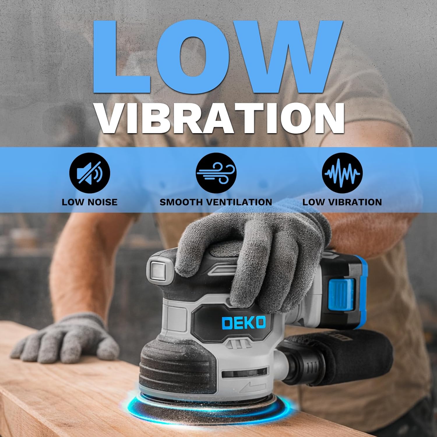 Der DEKOPRO Exzenterschleifer zeichnet sich durch eine besonders geringe Geräuschentwicklung aus. Kombiniert mit den niedrigen Vibrationen ermöglicht dies konzentriertes und ermüdungsfreies Arbeiten über längere Zeiträume. Die genauen Dezibel-Werte variieren je nach gewählter Geschwindigkeitsstufe.