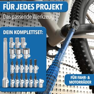 - Großes Bit-Sortiment: Durch das 21-teilige Set bist du für alle gängigen Schraubenköpfe an modernen Rädern (Inbus, Torx) sofort einsatzbereit.
