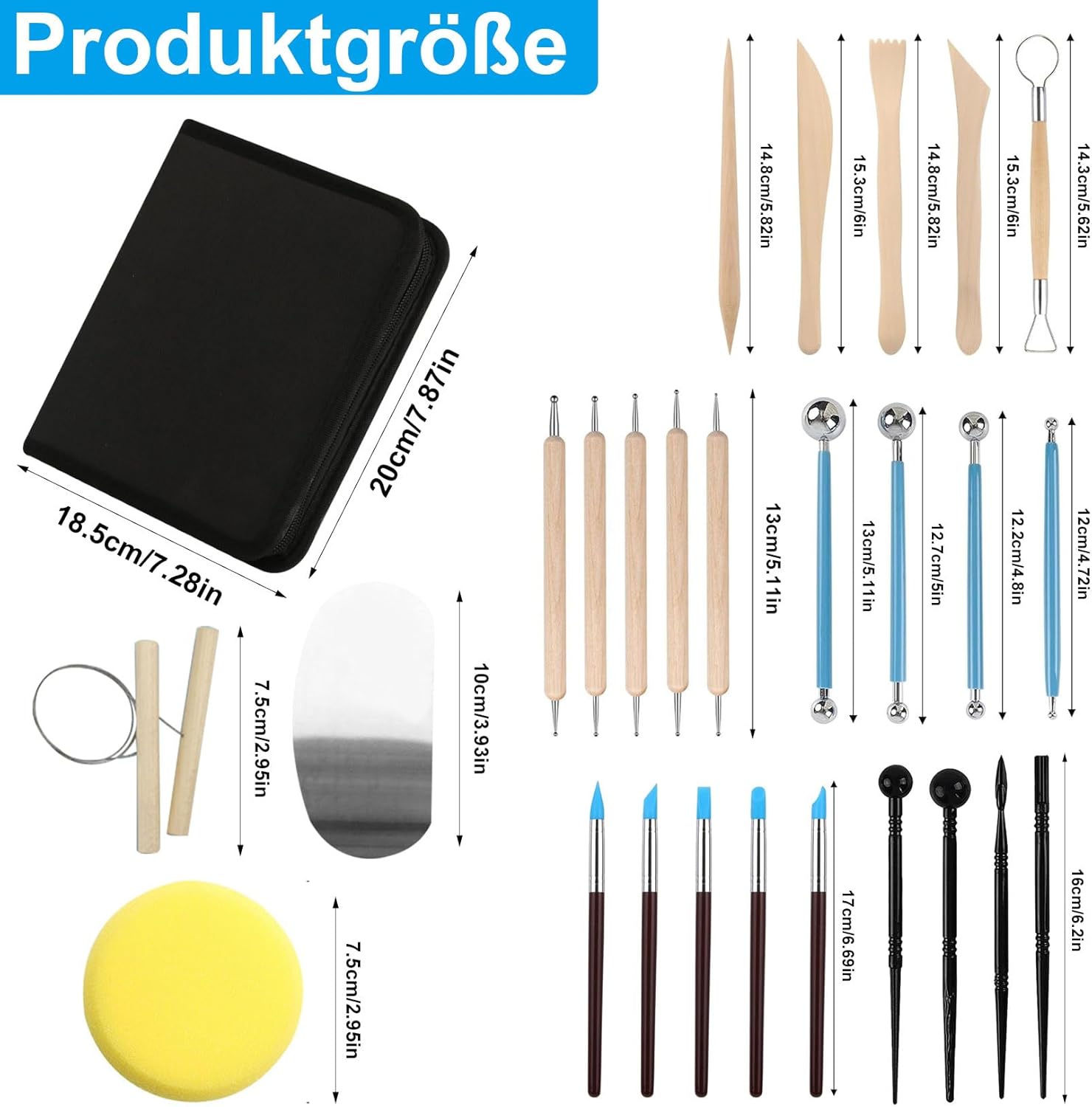 27 Stk Modelierwerkzeug Set,Modelliermasse Werkzeug, Polymer Clay Tools, Sculpting Pottery Set,Keramik Künstler Töpfer Werkzeug für Ton Zubehör,Töpferset Modelierwerkzeugset mit Aufbewahrungsbeutel27 Stk Modelierwerkzeug Set,Modelliermasse Werkzeug, Polymer Clay Tools, Sculpting Pottery Set,Keramik Künstler Töpfer Werkzeug für Ton Zubehör,Töpferset Modelierwerkzeugset mit Aufbewahrungsbeutel