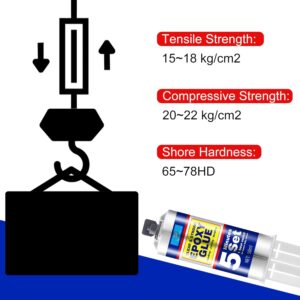 Für ein optimales Ergebnis sollten die zu klebenden Oberflächen sauber, trocken und fettfrei sein. Mischen Sie die beiden Komponenten im richtigen Verhältnis gründlich an, bevor Sie den Klebstoff zügig auftragen, da dieser innerhalb von 5 Minuten aushärtet. Das Produkt ist bei Anwendern sehr beliebt und erreicht eine Bewertung von 4,5 von 5 Sternen.