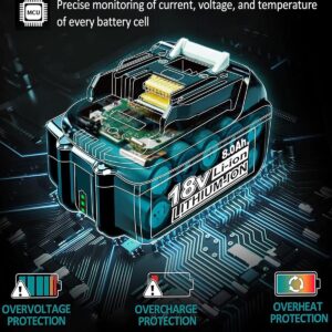 Die angebotenen Ersatzakkus sind kompatibel mit der Makita LXT-Serie, dazu zählen unter anderem die Modelle BL1860B, BL1850B, BL1850, BL1840B, BL1840, BL1830B, BL1830, BL1820 und BL1815. Sie decken somit eine breite Palette an 18V-Geräten ab, die mit der LXT-40 Plattform betrieben werden. Bitte beachten Sie jedoch, dass die Akkus nicht mit den Schnellladegeräten DC18RA und DC18RD kompatibel sind.