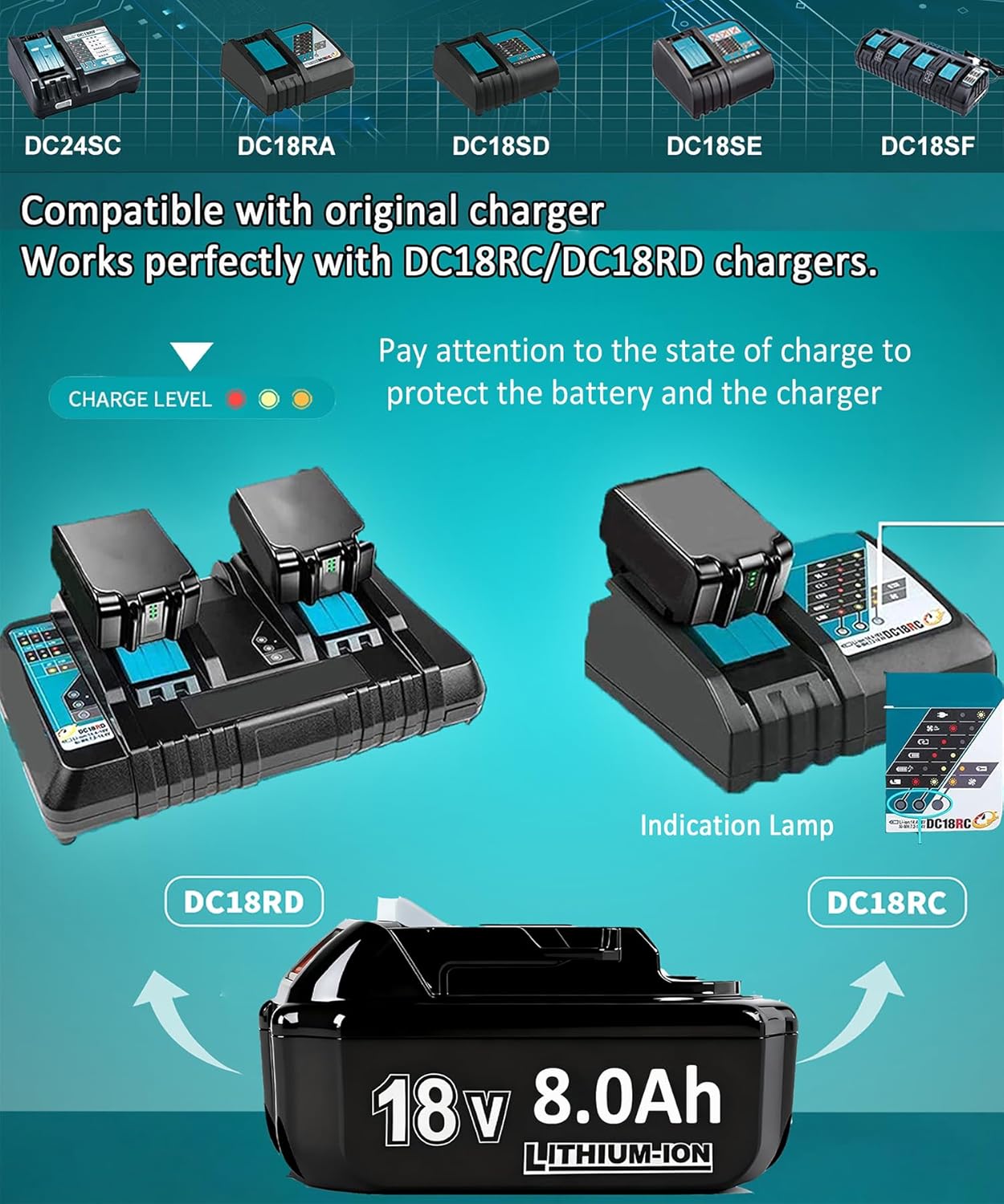 Die 2X 18V 8.0Ah/8000mAh Ersatzakkus für 2X 18V 8.0Ah/8000mAh Ersatzakk sind die ideale Lösung für Profis und ambitionierte Heimwerker, die ihre Makita-Akkugeräte ohne ständige Zwangspausen betreiben wollen. Mit einer Kapazität von 8.0Ah bieten diese Akkus massiv Laufzeit für leistungshungrige Maschinen wie Winkelschleifer, Handkreissägen oder Bohrhammer.