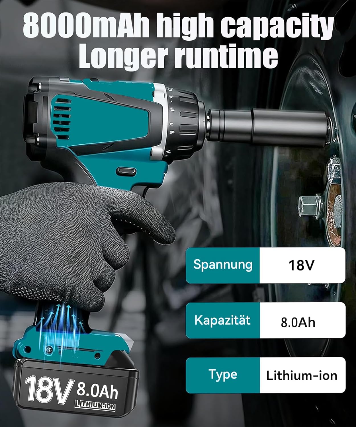 - Maximale Laufzeit: Mit 8.0Ah Kapazität verdoppelst du im Vergleich zu Standard-Akkus oft die Zeit, die du ohne Ladestopp auf dem Gerüst oder in der Werkstatt verbringst.
