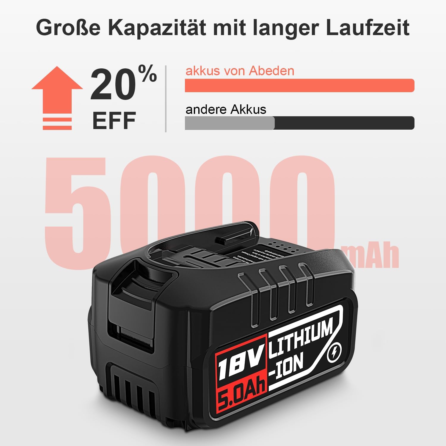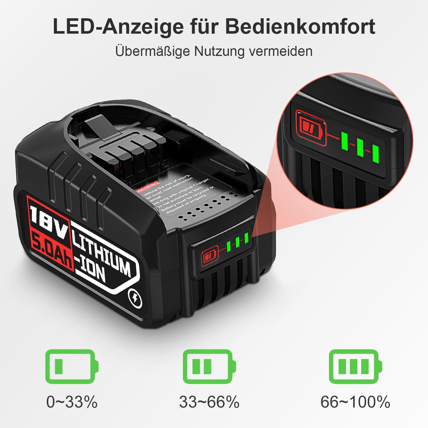 - Maximierte Ausdauer: Die 5,0 Ah Kapazität ermöglicht ausdauernde Arbeitseinsätze, ohne den Akku ständig wechseln oder laden zu müssen.