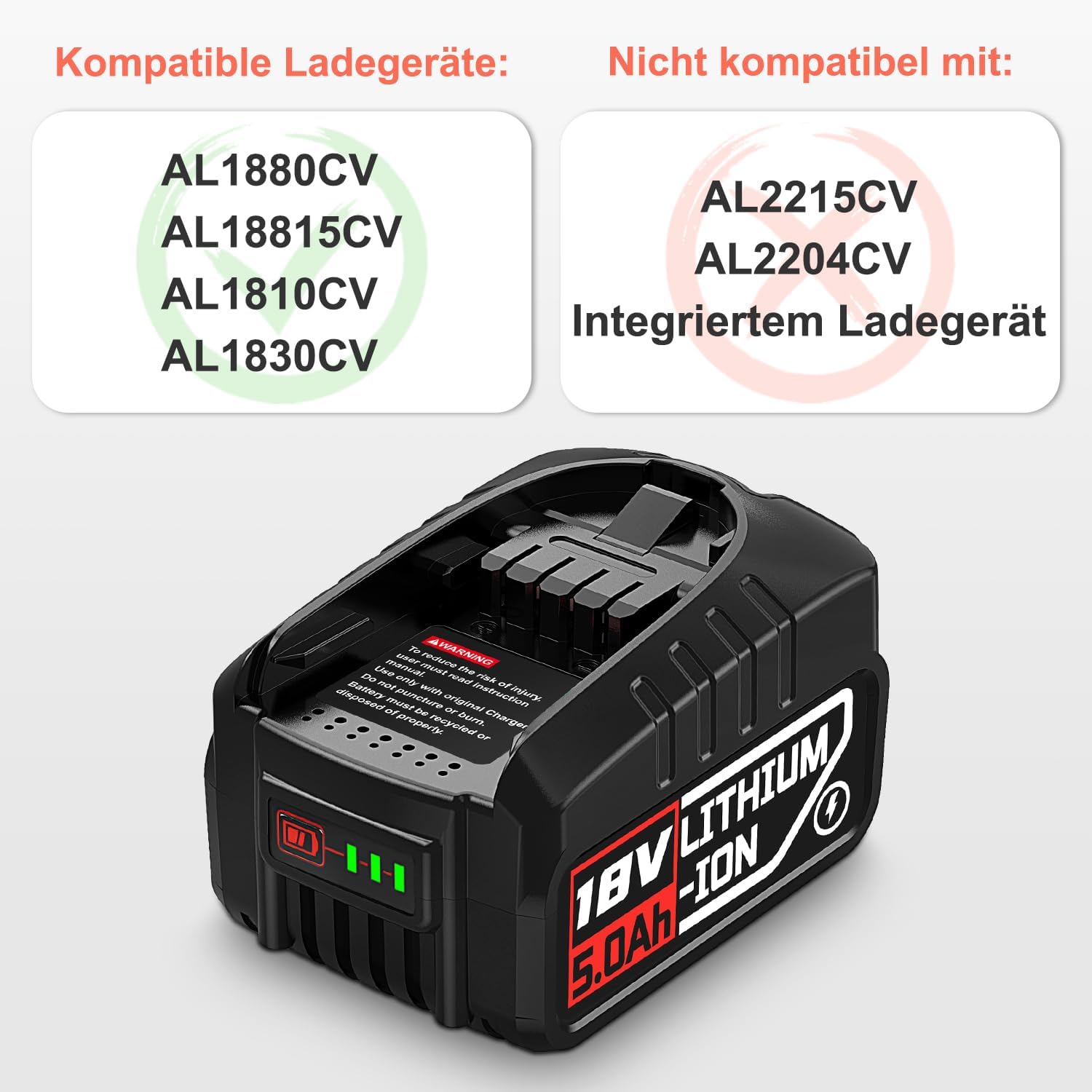 | Kompatible Ladegeräte | AL1810CV, AL1830CV, AL1880CV |