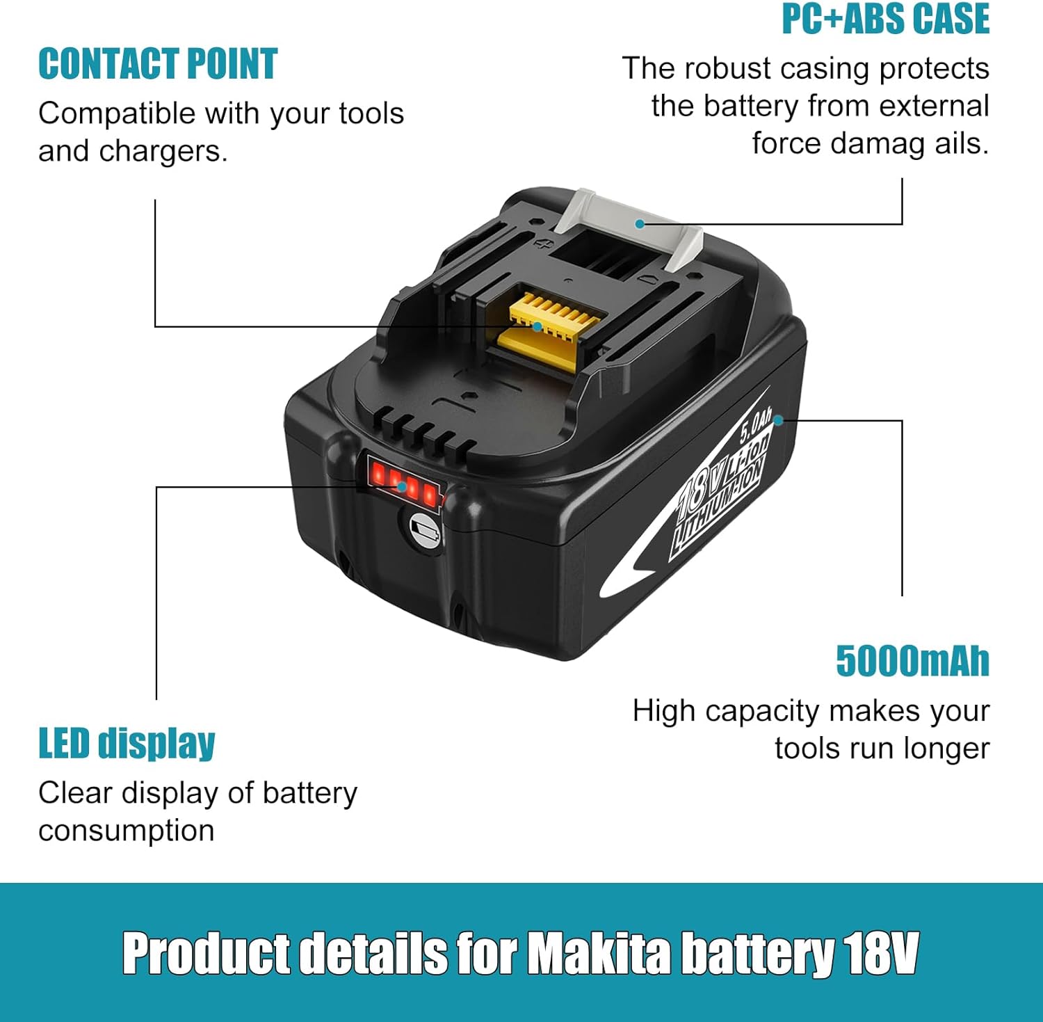 Produktbeschreibung für 2X 5000mAh kompatibel für Maki