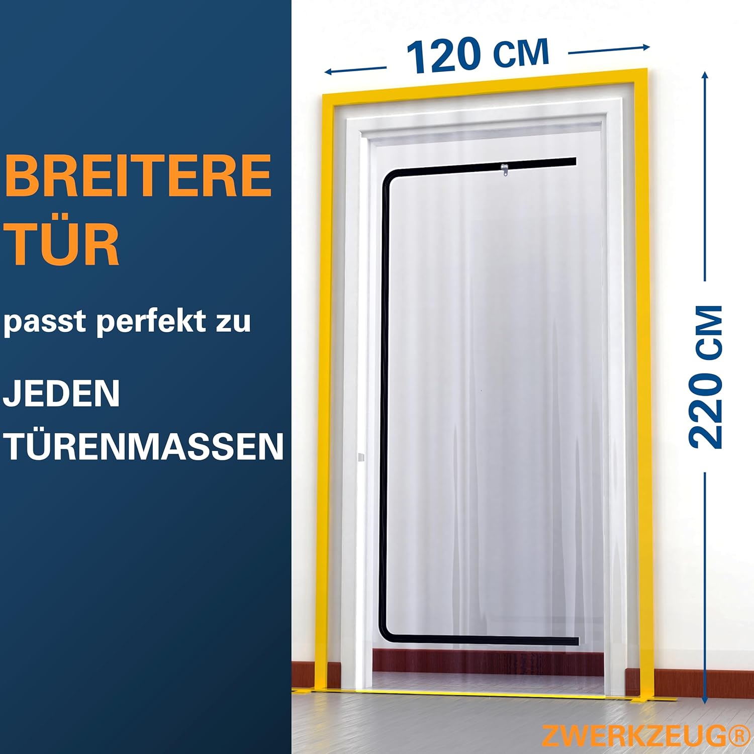 - Universelle Passform: Mit den Maßen 120 x 220 cm deckt die Tür alle gängigen Türrahmen ab und lässt sich passgenau mit Klebeband fixieren.