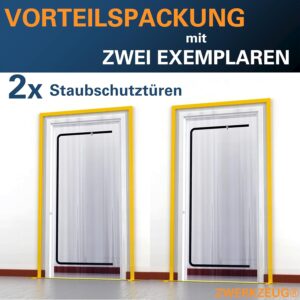 Das 2x ZWERKZEUG® 2x Staubschutztüren-Set ist die erste Wahl für alle Staub- und Schmutzquellen in Innenräumen. Egal ob du als Schreiner beim Schleifen von Parkett Staubminimierung betreibst, als Metallbauer Bohrungen durchführst oder als Hobby-Handwerker Wände einreißt – die Tür hält den Arbeitsbereich sauber.