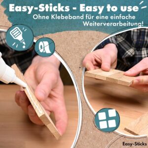 Die Easy-Sticks sind bewusst ohne Klebeband gestaltet, da Kleberückstände unschöne Spuren auf dem Naturholz hinterlassen könnten. Durch den Verzicht auf Klebeband können die Holzstäbchen direkt für deine Bastelprojekte verwendet werden und bleiben in ihrer optischen Qualität ungetrübt.