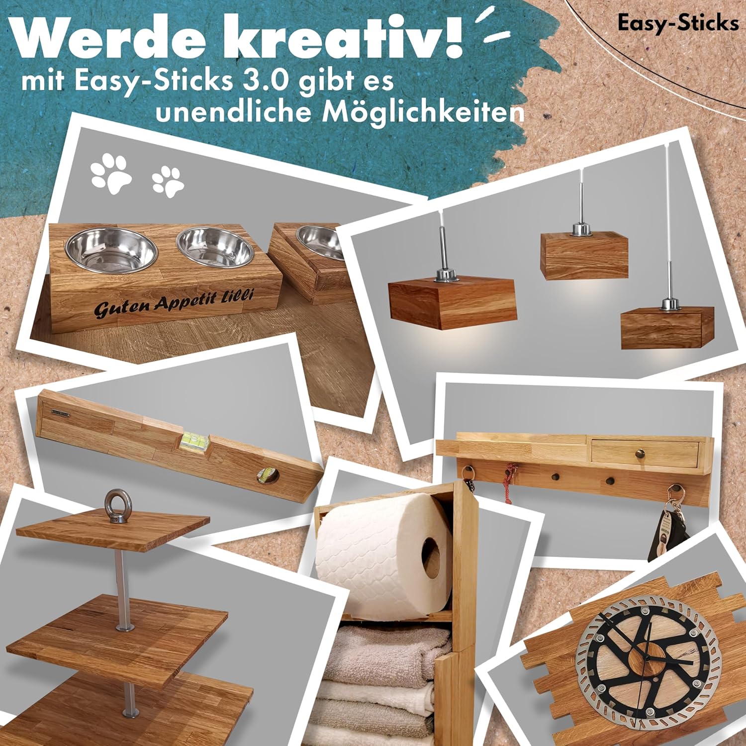 Die Easy-Sticks 3.0 zeichnen sich durch ein sehr gutes Preis-Leistungs-Verhältnis aus und werden von Anwendern positiv mit 4,5 von 5 Sternen bewertet. Das hochwertige Eichenholz sorgt für Stabilität und ermöglicht eine einfache sowie kreative Umsetzung verschiedenster Bastelprojekte.