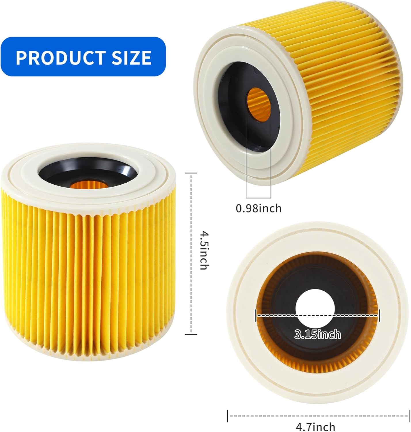 Funktionen: Sie erhalten künftig 3 Stück Für Patronenfilter Kompatibel, ausgestattet mit einer Bürste, in mehrschichtiger Schutzverpackung – Patronenfilter Kompatibel für Nass und Trockensauger, Das Produkt ist aus hochdichtem ABS-Material entsprechend der Originalgröße gefertigt, WD 3.500 P / 2101 / 2001 / WD3P / WD 3 / WD 2 / WD 1 / WD 3.200 / WD 3.300 M Spezifikationen: Farbe: Gelbe Farbe Material: Paper Größe: 38*13*13CM Paketinhalt: 3 Filter Für Kärcher Staubsauger,Patronen