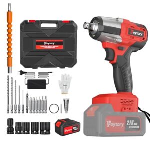 • 21V Akku-Schlagschrauber: 21V bürstenloser schlagschrauber, angetrieben durch einen hochspezialisierten ürstenloser motor, stromversorgung durch einen 6000-mAh-Akku. Aus strapazierfähigem Aluminiumkopf, gute Dichtwirkung und Drehwelle aus Wolframstahl