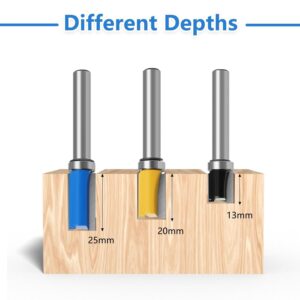 - Drei Schnittlängen in einem Set – Mit 13mm, 20mm und 25mm Arbeitslängen deckst du verschiedene Materialstärken ab, ohne zusätzliche Fräser kaufen zu müssen