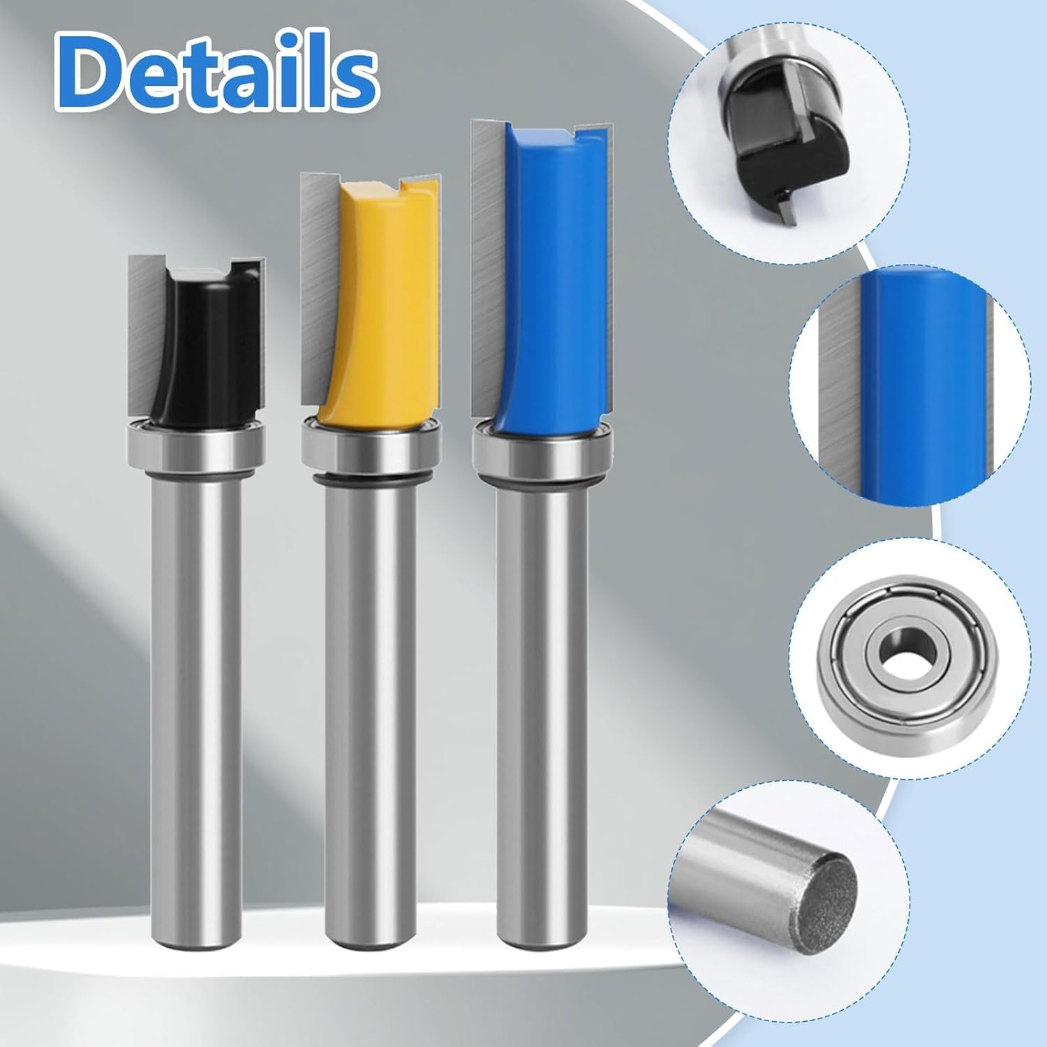 - Preis-Leistungs-Verhältnis für Einsteiger und Profis – Für unter 11 Euro erhältst du ein komplettes Basis-Set für die meisten Bündigfräs-Arbeiten in der Werkstatt