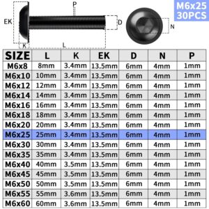 30 Stück Linsenkopfschrauben Edelstahl M6x25mm Schrauben M6 mit Flansch Innensechsrund ISO 7380-2 Flachkopfschrauben Edelstahl A2 V2A Schwarz Vollgewinde für Tischbeine Fahrzeugbau Holz Gerüst