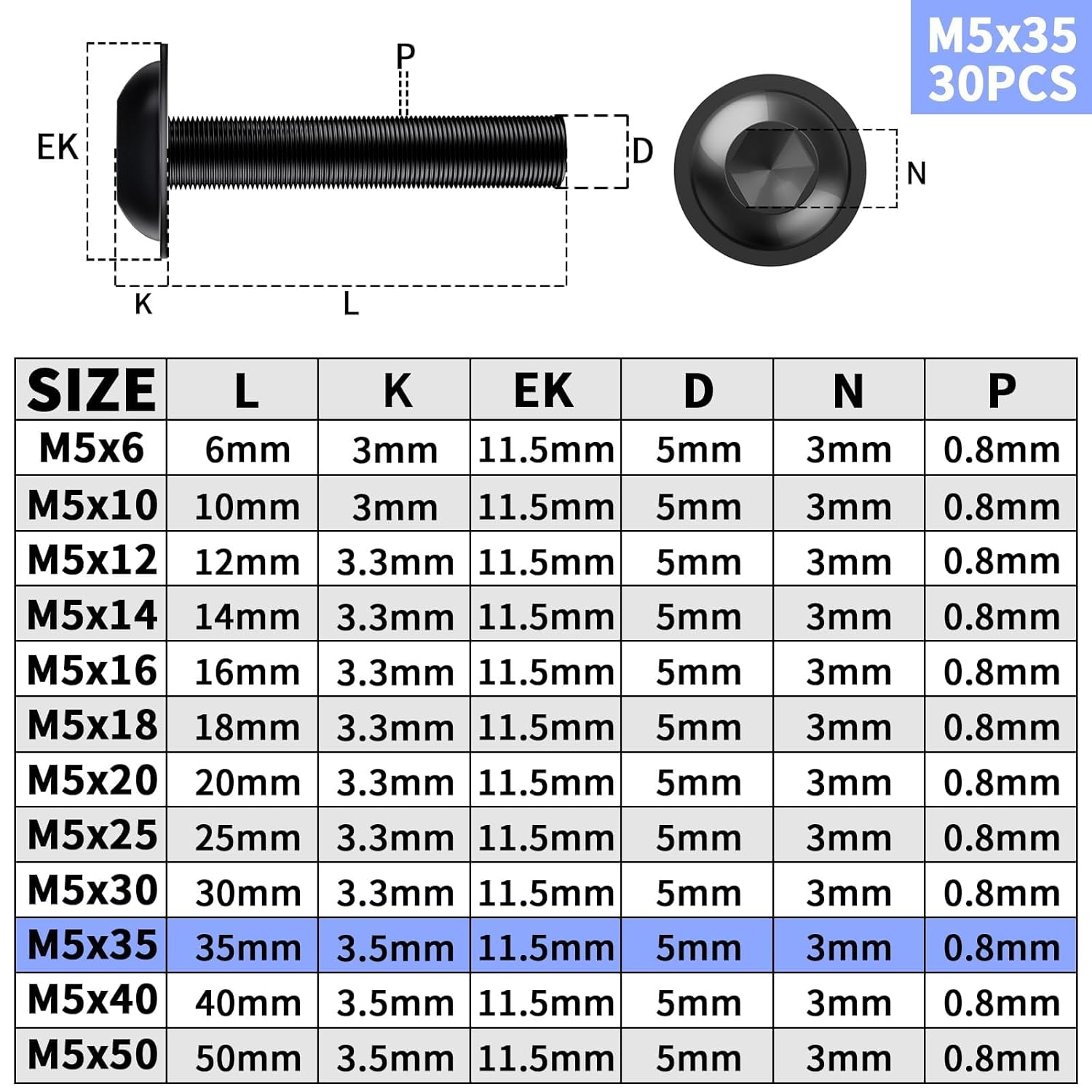 Produktbeschreibung für 30 Stück Linsenkopfschrauben M5
