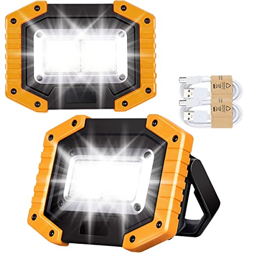 30W LED Akku Strahler Baustrahler Wiederaufladbare Superhell 2000 Lumen Arbeitsleuchte Wasserdichtes COB Arbeitsleuchte USB Campinglampe für Garage Outdoor Camping Angeln Notfall Baustellen, 2 Stück