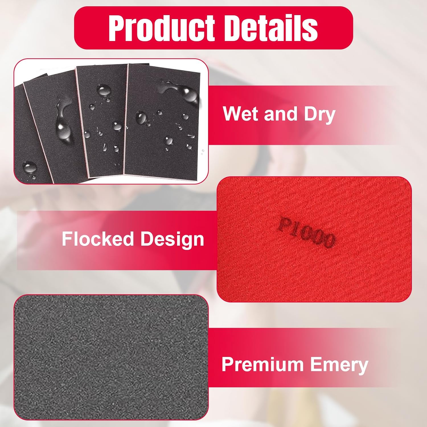 - Vollständiges Körnungsspektrum: Von P180 für grobes Abtragen bis P4000 für feinste Polierarbeiten deckst du mit 12 unterschiedlichen Stärken jeden Arbeitsschritt mit nur einem Set ab.