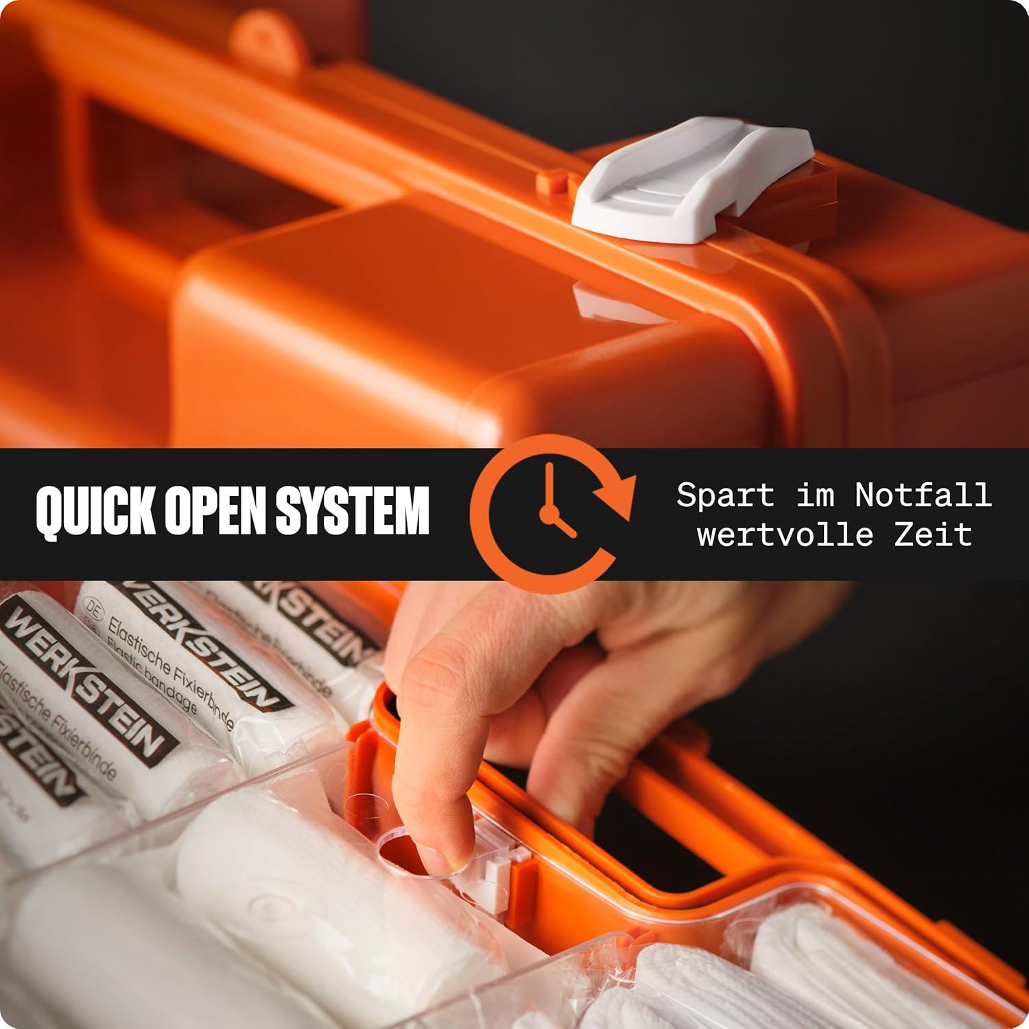 Der WERKSTEIN Verbandkasten ist ein wichtiger Retter im Notfall, da er bei ernsten Unfällen oder Verletzungen eine schnelle und effiziente Erstversorgung ermöglicht. Mit dieser Norm sind Sie in größeren Betrieben rechtlich und sicherheitstechnisch für den Ernstfall ideal ausgestattet.